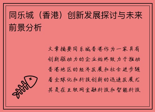 同乐城(香港)作为一家具有创新驱动力的企业,始终致力于推动香港地区的经济发展和社会进步。随着全球化和科技创新的迅速发展,尤其是在互联网、金融科技和智能科技的不断推进下,同乐城(香港)如何顺应时代潮流、实施创新战略,成为其持续发展的核心命题。本文将从同乐城(香港)创新发展的四个关键方面进行详细探讨,包括创新技术的应用、市场竞争力的提升、企业管理的优化以及未来前景的展望。首先,本文分析了同乐城(香港)如何通过技术创新推动业务拓展,并借助前沿技术提升企业效能;其次,探讨了同乐城(香港)如何通过精准的市场定位与差异化竞争策略在激烈的市场环境中脱颖而出;再者,文章还聚焦于同乐城(香港)如何通过完善的管理机制,提升组织效率,确保可持续发展;最后,文章结合当前发展趋势,对同乐城(香港)未来的发展潜力进行了展望。通过全面分析,本文为读者呈现了同乐城(香港)创新发展的现状、挑战与机遇,并为未来的战略布局提供了有益的思考。